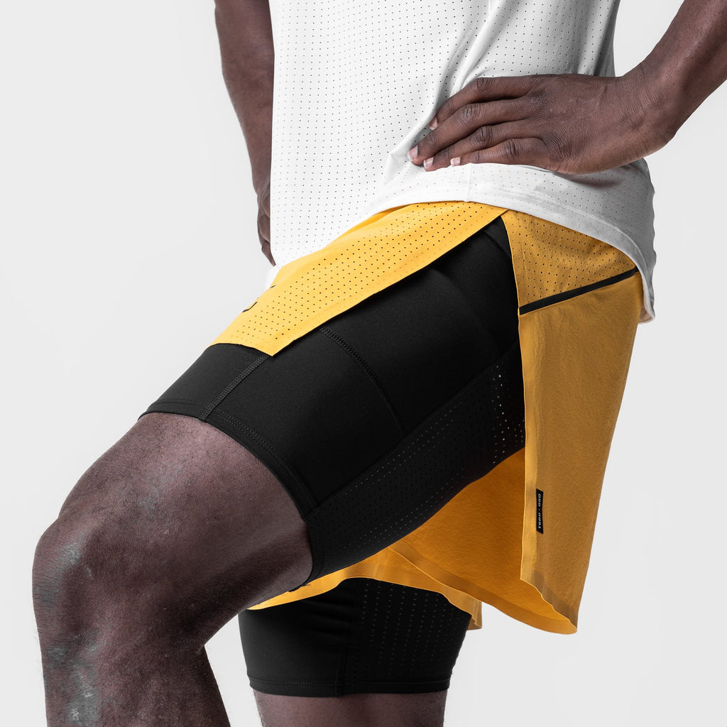 Innovative high-split short built for complete freedom of movement. Our new Aerotex™ material is an extremely lightweight and breathable soft shell with a textured surface for enhanced drying. The liner is made from our WarpFlexx-Lite™ material for next-to-skin comfort with Laser-Vent™ panels for added ventilation where its most needed. The shorts feature our new perforated waistband to eliminate sweat build-up. Internal drawstrings provide a secure fit. Storage includes two bounce-free media pockets on the liner and a utility loop for a shirt or towel. Finished with reflective branding for high visibility at night.
